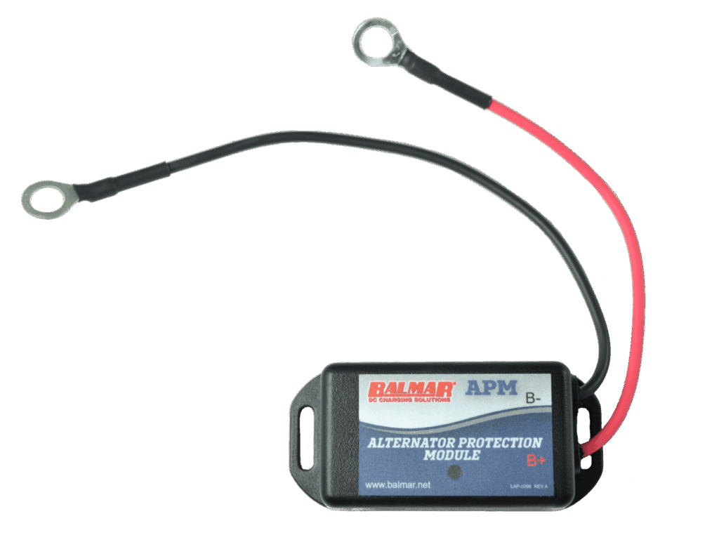 Balmar Catalog The Balmar APM provides best-in-class surge protection using the latest technology developed for the automotive industry. It can protect alternators from damaging effects:• Battery switch disconnects• Lithium battery BMS disconnects• Surges from solenoids, combiners, starters and other motors. The Balmar APM excels in both short duration and longer duration spikes, where other products fail.